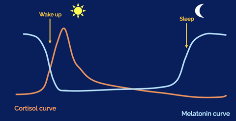 평일에는 아침 7시에 코르티솔이 분비되면서 기상에 도움을 줍니다.